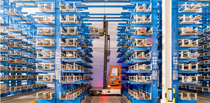 两台人上行三向叉车助力,布局1.75m巷道间距、85m深窄巷道货架方案,高位密集存储+高效拣选,为客户提升内部物流竞争力!