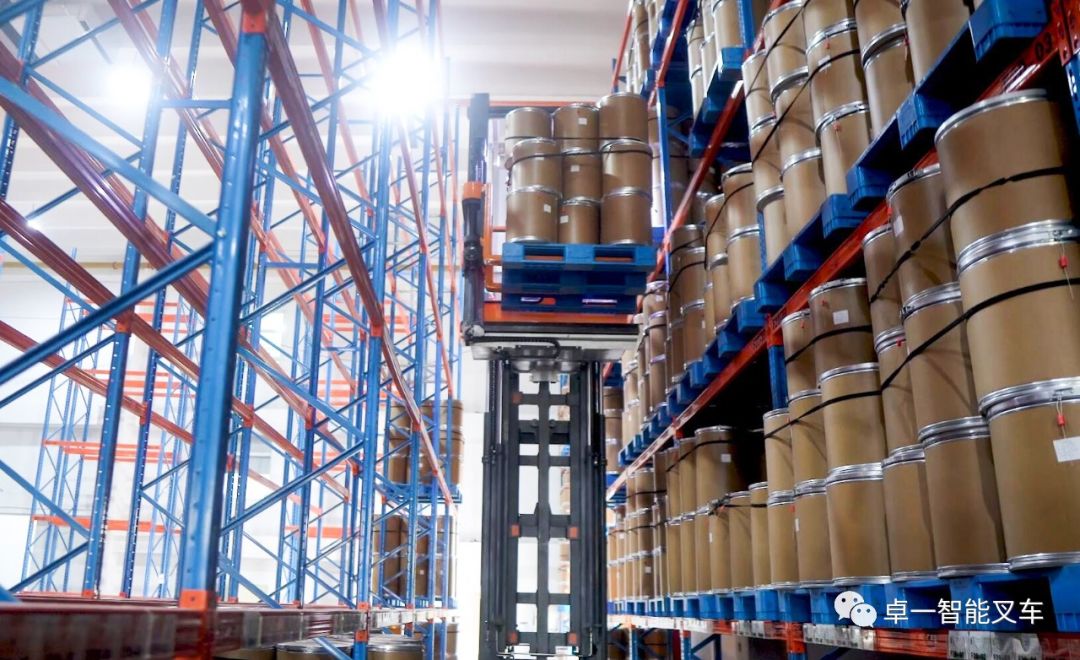 原料仓存在拣选需求,适用人上行三向叉车,可替代铰链式叉车+拣选车的运作模式。