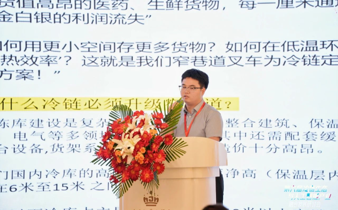 冷链行业不同于寻常应用场景,在演讲中,卓一销售经理提到受冷链物流需求增长带动的冷库出租量增长,指出冷链仓储物流面临的库容不足、运营成本居高不下、出入库效率低下、叉车打滑、叉车液压系统冻结等痛点,叉车自身的防滑、防寒、防水、续航等方面也至关重要。