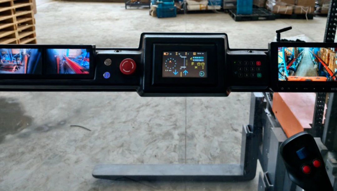 3.全方位摄像头+高清液晶显示屏,直观监测整车状态;集成手柄控制车辆,作业更精准、行驶更稳定,高位存取更安全!人上行三向叉车标配的三向电动叉头,在货叉位移到末端时将自动减速,减少叉取货物时的晃动程度,更能保障泵类产品的精度不受破坏!