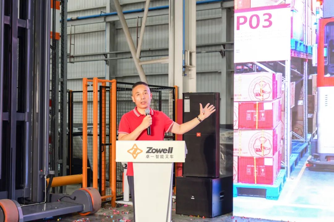 在客户代表致辞环节,河南锦和供应链管理有限公司董事长登台致辞,他表示:“锦和冷链首批采购的四台卓一人上行三向叉车,3年来,产品在-18℃的低温环境中始终表现稳定、故障率持续低于行业均值,售后服务团队也是响应迅速、专业高效。期待继续深化与卓一的合作,成为第一批新产品最忠实的用户,也期望双方携手开拓更广阔的发展空间!”