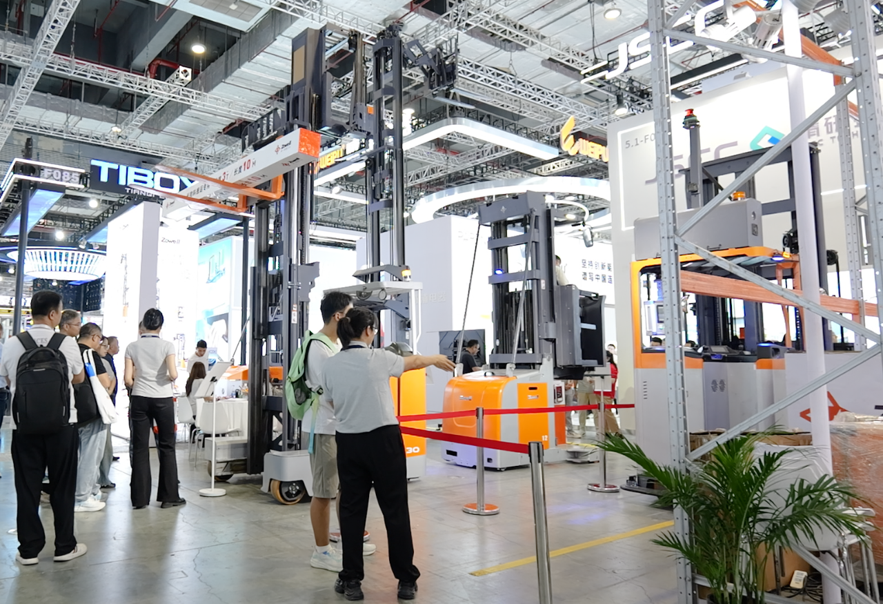 卓一展位上,AGV三向叉车在动态演示区中流畅演示自动运输、精准导航、高精度存取货物与全方位智能避障等无人化作业能力,展现了卓一在无人化物流解决方案上的成熟技术,引来众多客商围观,成为现场咨询热门。