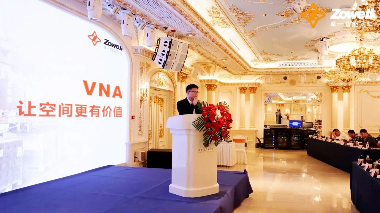 卓一智能叉车受邀参会,由华东大区销售经理登台发表《VNA,让空间更有价值》主题演讲。他结合一线服务中的典型案例和实际数据,生动呈现了卓一窄巷道叉车如何提升企业的库容量和整体运营效率,引发了在场嘉宾的浓厚兴趣。