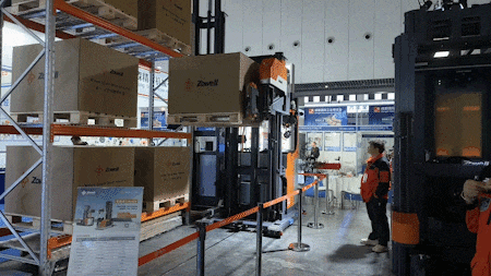 动态演示区,窄巷道三向AGV叉在模拟场景中展现了无人化作业能力,给现场客商带来了惊喜。