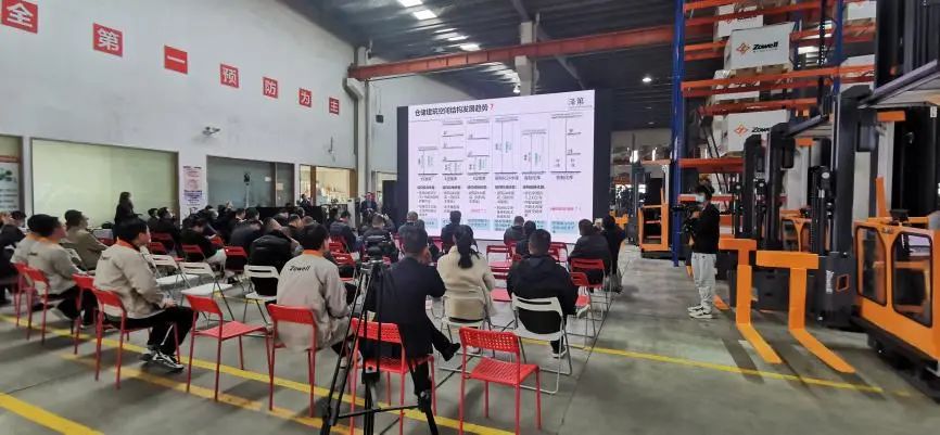 卓一总经理潘小军在会上重点介绍了公司窄巷道家族产品,以及专利技术、性能参数、应用场景等。他表示公司每年在产品研发、智能化改进、人性化设计创新上大量投入,以不断满足市场需求;公司产品聚焦于“窄”和“轻”,致力于在产品、技术、管理、品牌领域构建竞争优势,为工业领域的客户提供搬运设备、仓储物流技术,已广泛应用于航空、医药、电商、汽车、电子、食品、烟草、物流、冷链等行业;卓一智能叉车将始终坚持“让空间创造价值”,对未来发展充满信心。
